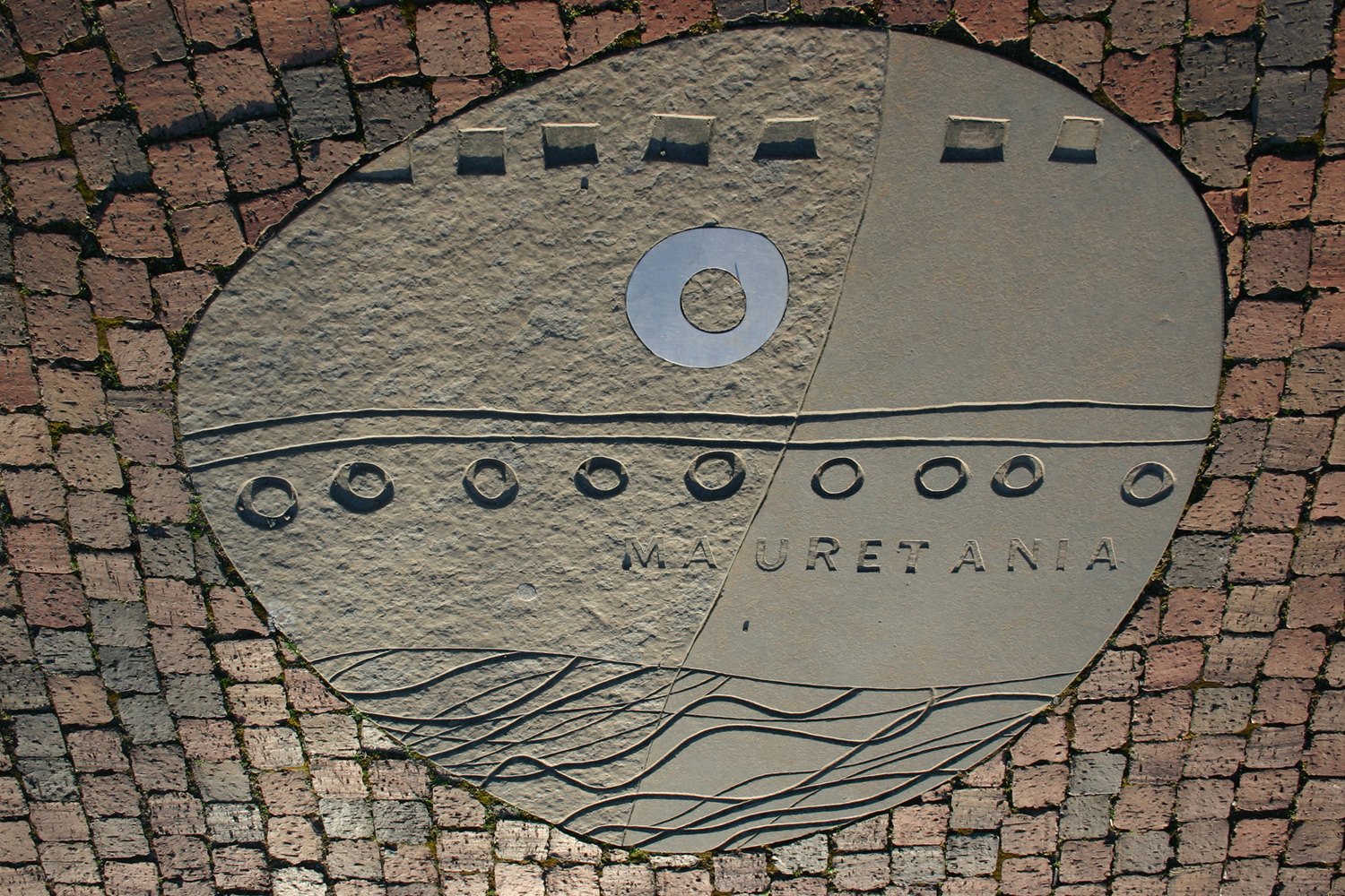 One of the picture stones in Amble Town Square commemorates the conversation between RMS Mauretania and Amble Urban Council