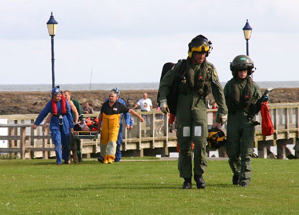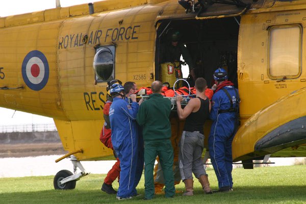 Paramedic Trevor Nesbitt who was among the crew of the All Weather Lifeboat The Four Boys assessed the man’s injuries which he deemed were serious enough to go with the Sea King which was already on its way.