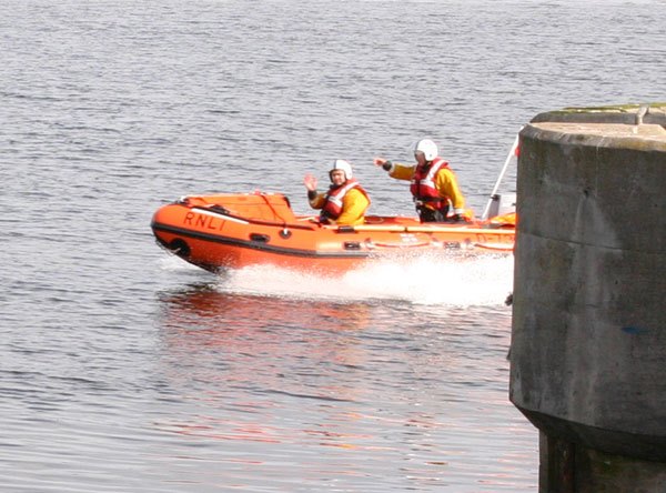 Amble’s rescue services were called into action today (Tuesday 23rd Aug) when a fisherman slipped into the sea, becoming wedged in a concrete crack. The angler had been fishing on the North Pier and tried to negotiate his way through the crack at the end of the pier. Two other anglers raised the alarm, which brought out both Amble’s RNLI lifeboats, the Coastguard and a Sea King helicopter from RAF Boulmer.