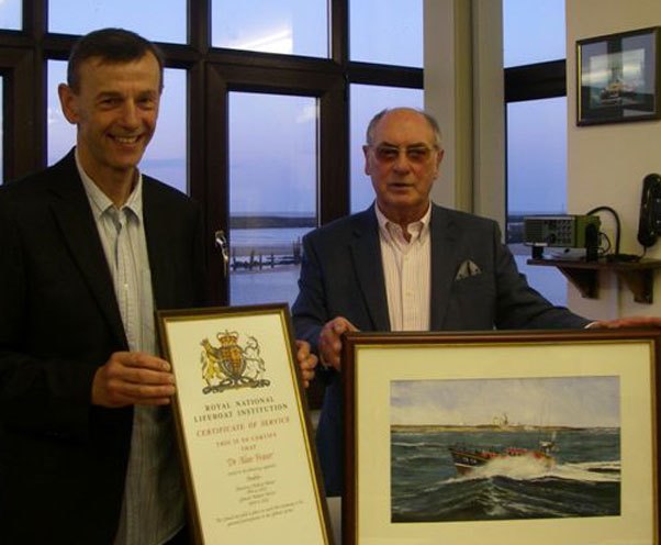 Mr Rodney Burge, Amble Lifeboat Operations Manager and ex lifeboat coxswain, who has served with Doctor Fraser said, “During Doctor Fraser’s long association with Amble lifeboat he had proved to have been of great assistance and although the post of medical adviser does not appear as high profile (in relation to the crew of the lifeboat) his service and that of all medical advisers is invaluable to the lifeboat crew and the RNLI”