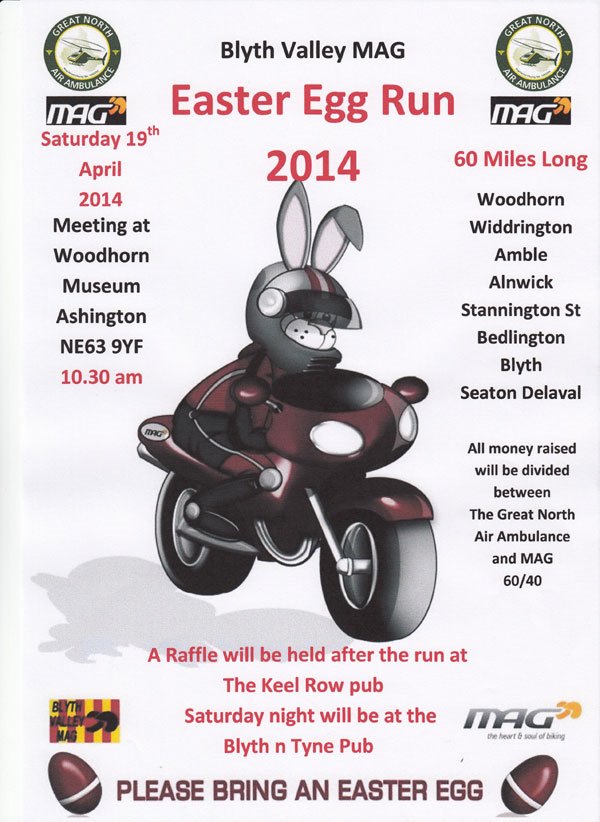 On Saturday 19th April Blyth Motor Cycle Action Group will be doing their annual Easter Egg Run