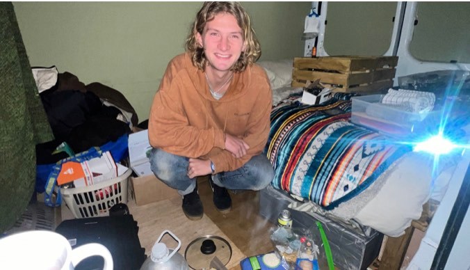 Surfing instructor Jacob used his campervan as his home