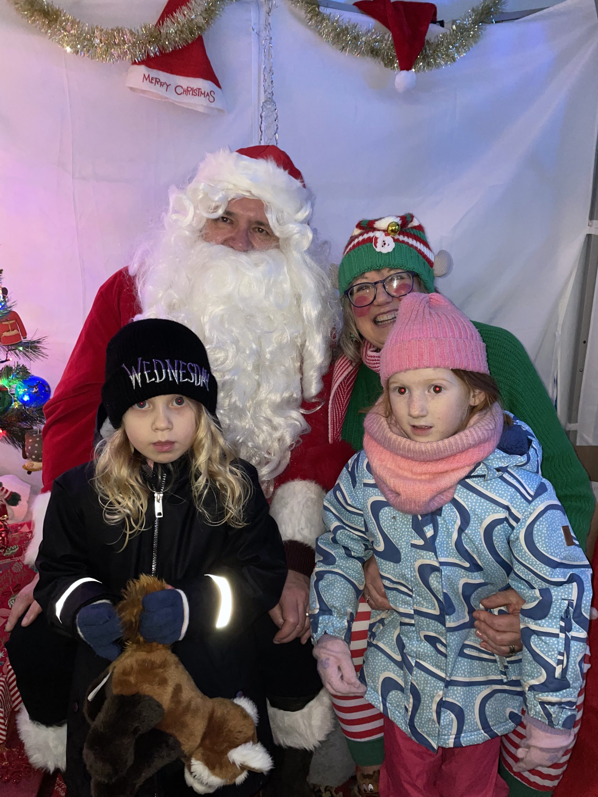 Santa was busy all afternoon, and despite the wet weather, entertainment from Andy and friends, and the stalls in the Town Square lifted people’s spirits.