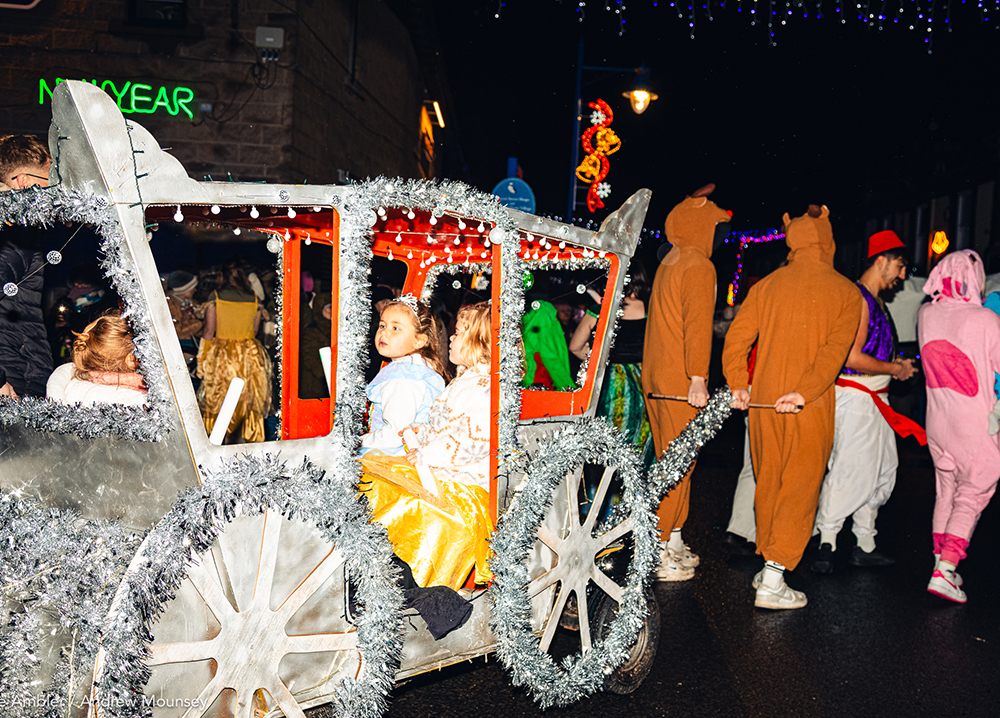 Ten year-old Hildi Wehr officially switched on the Christmas lights and set the parade going. She is Amble’s Good Young Citizen of the Year 2025 and won the honour as part of her prize.
