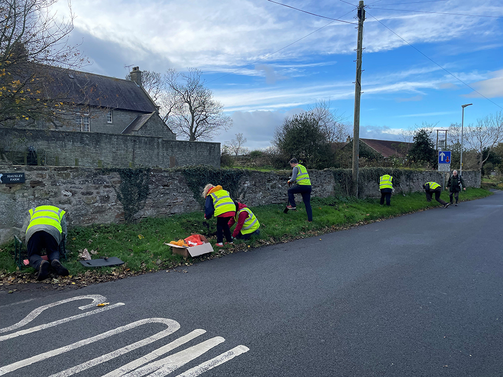 One idea for enhancing our beautiful villages was to form a strategy for planting bulbs over the next couple of years. This initially involved liaising with NCC to plant bulbs and sow wildflower seed in locations where they would not interfere with grass cutting requirements. The PC then approached Hauxley Nature Reserve, and NWT enthusiastically agreed to fund the majority of bulbs through their community projects.