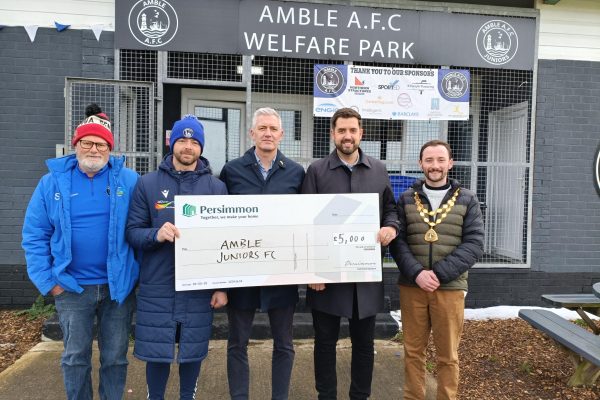 A cheque for £5000 has been given from the Persimmon Charitable Foundation to Amble AFC Juniors….